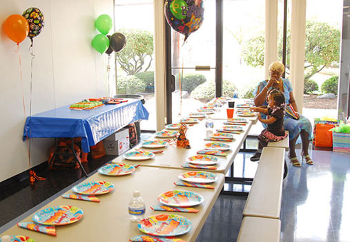 Parties are 2 hours; 70 minutes inflatable adventure room and 50 minutes cake room
